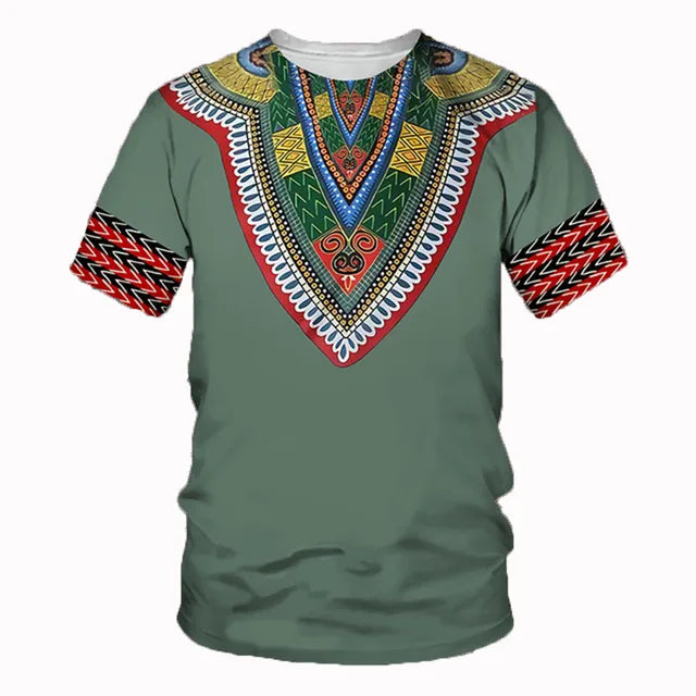 African Traditional Dashiki Print Short Sleeve Retro Ethnic Top