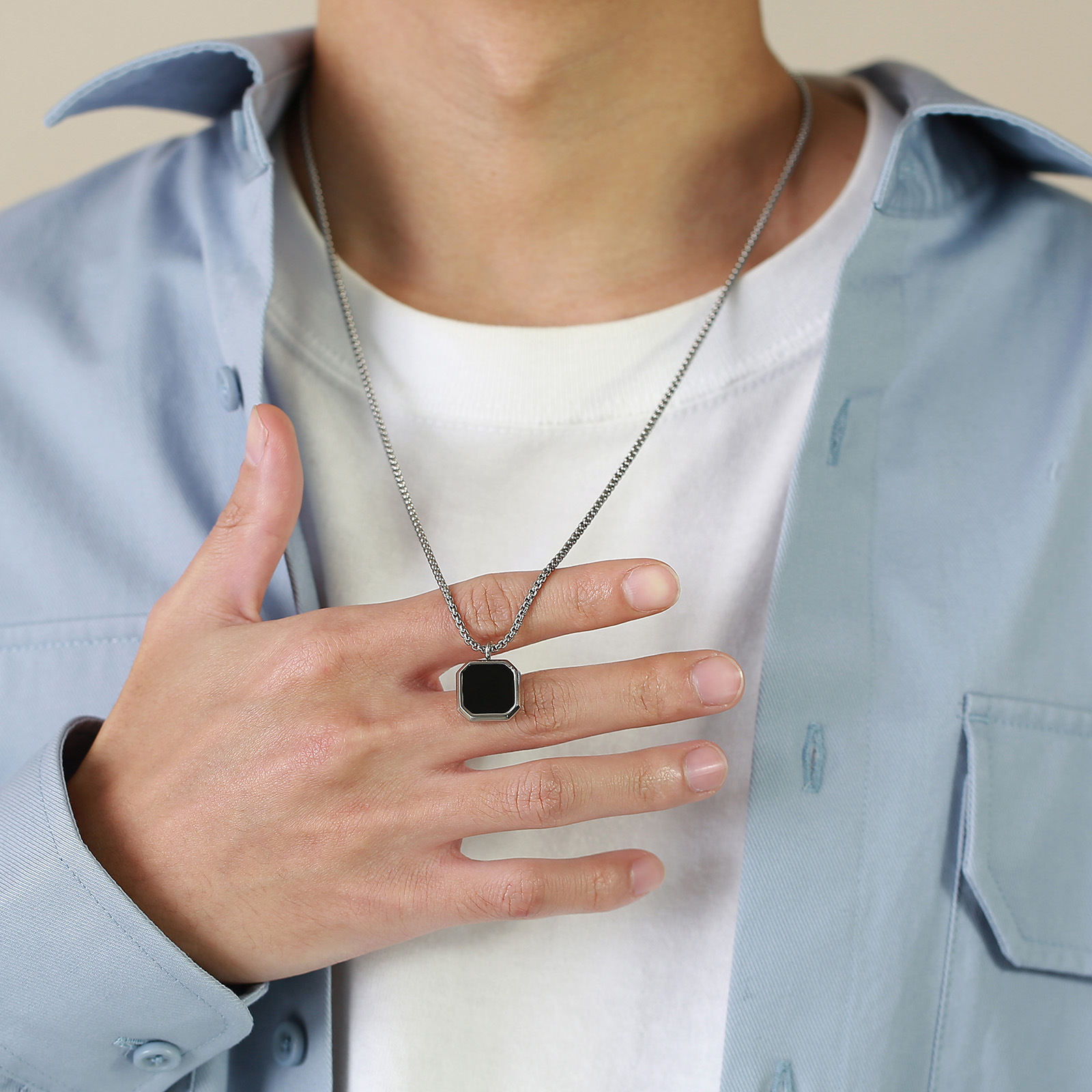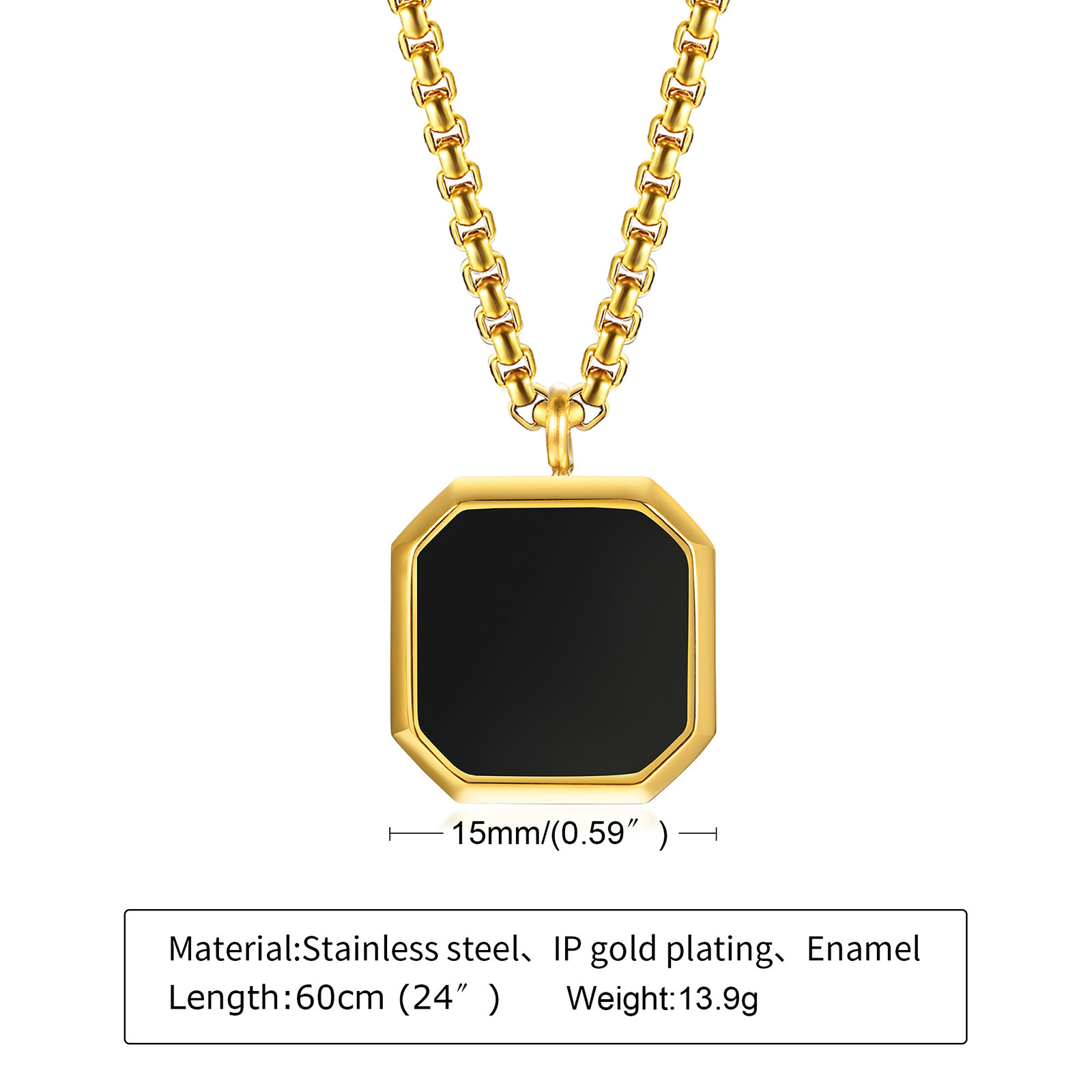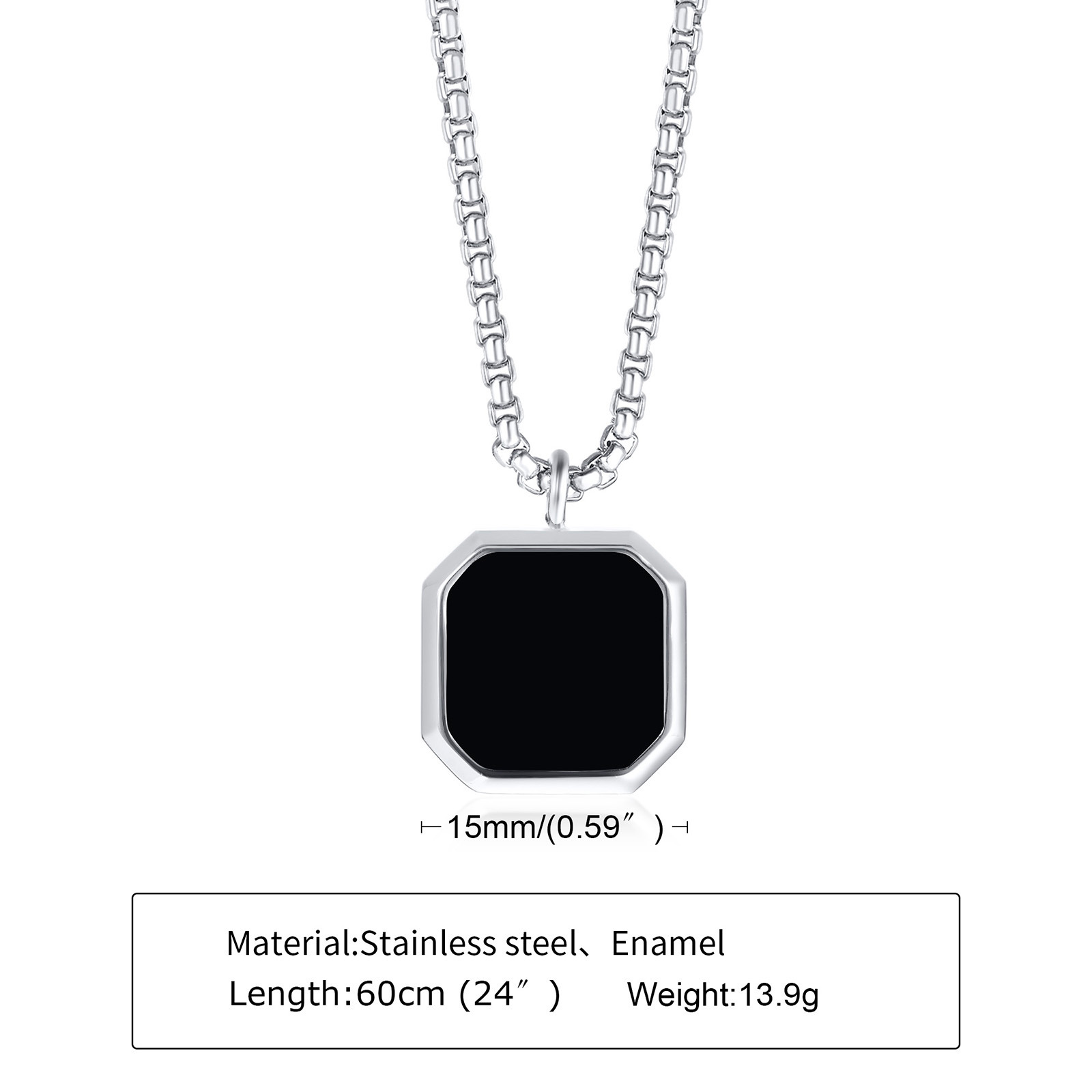 Colgante cuadrado negro con pegamento de acero inoxidable para hombre, collar plegable para suéter, accesorios de cadena larga para suéter