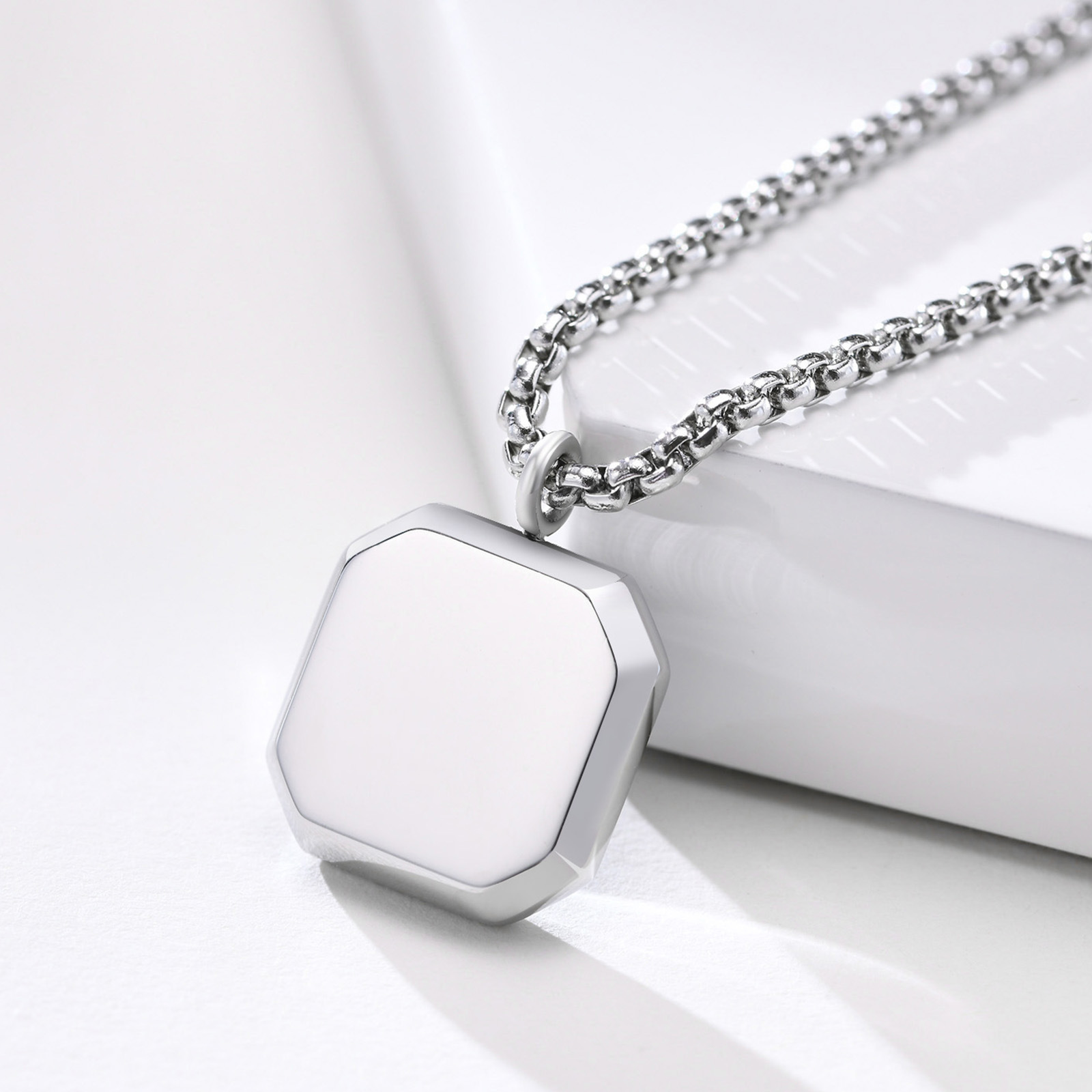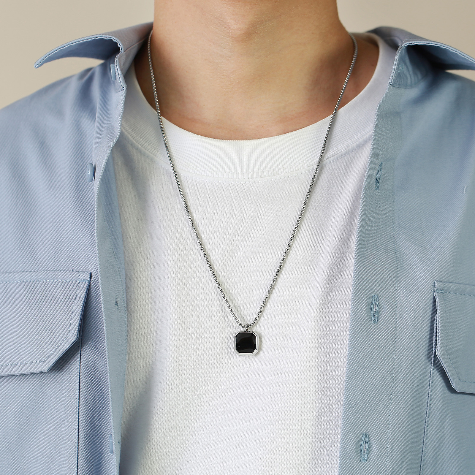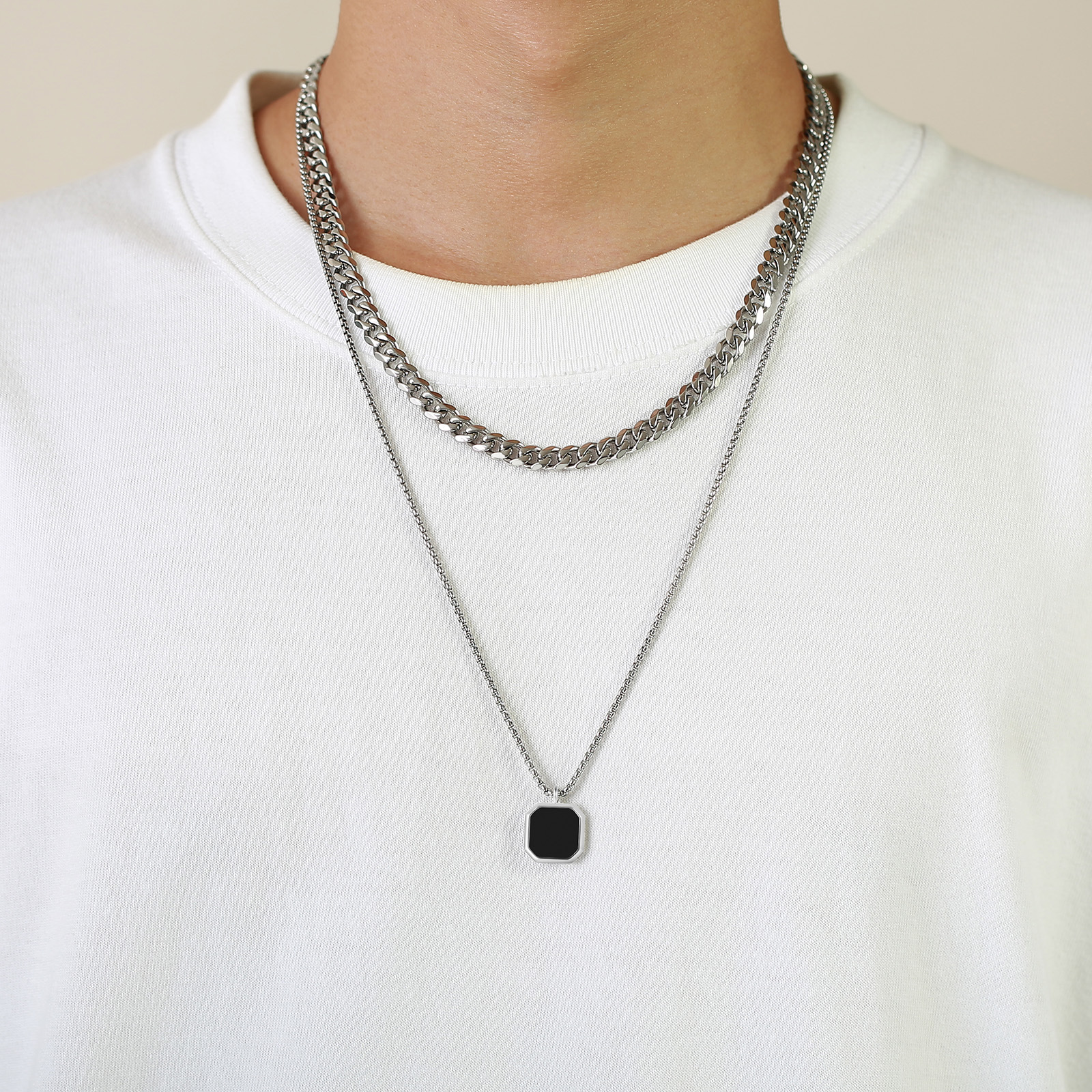 Colgante cuadrado negro con pegamento de acero inoxidable para hombre, collar plegable para suéter, accesorios de cadena larga para suéter