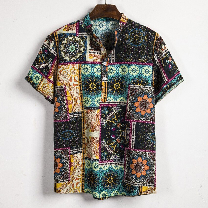 African Dashiki Print Dress Shirt Men Male Fashion Casual Streetwear Ethnic Club Sexy Short Sleeve Linen Summer Top Shirt Clothe