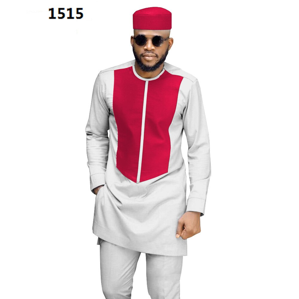 New African Men Traditional Clothing Set Dashiki Coat Shirt And Ankara Pants And Tribal Hat Attire Tracksuit